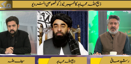 اسلام آباد: خيبر نيوز پروګرام ”مکالمه“ کښې کوربه رشيد صافي او سیف الله خان سره خصوصي خبرو پرمهال افغان طالبانو حکومت مرکزي وياند ذبيح الله مجاهد په ډاګه کړې چې افغان خاوره به د چا خلاف هم نۀ استعماليږي ۔