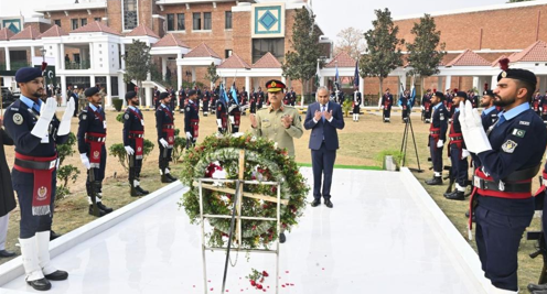 په دې موقع چيف آف ډيفنس فورسز او فيلډ مارشل سيد عاصم منير د شهيدانو په يادګار ګلونه کيښودي او فاتحه خواني ئې کړيده ۔